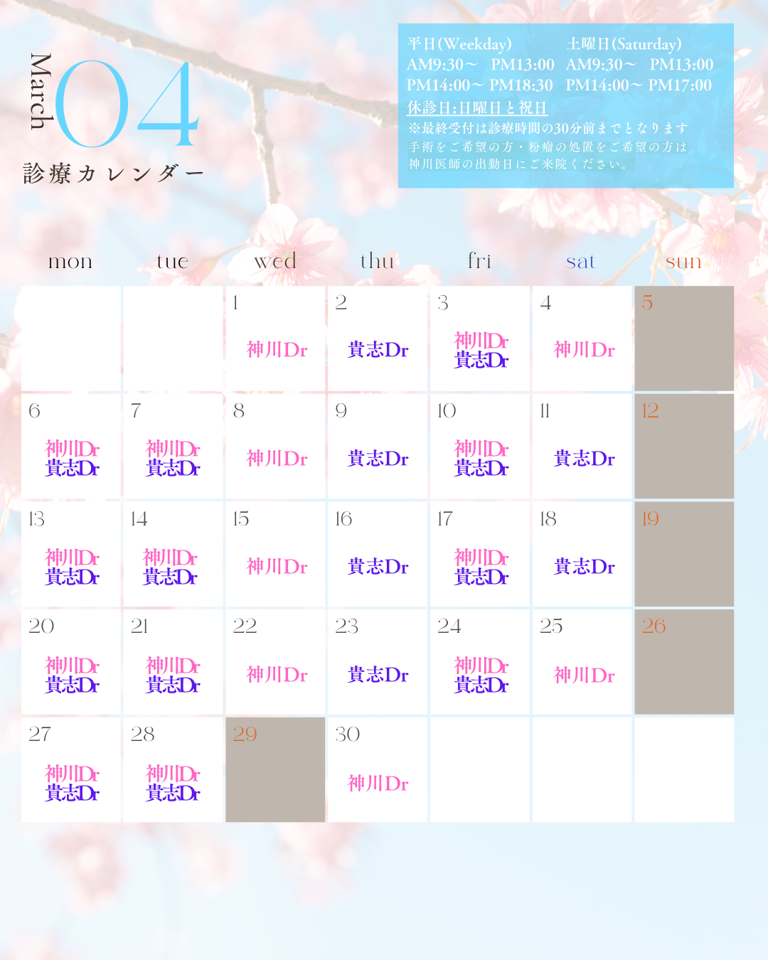 4月の医師勤務日程のご案内です。